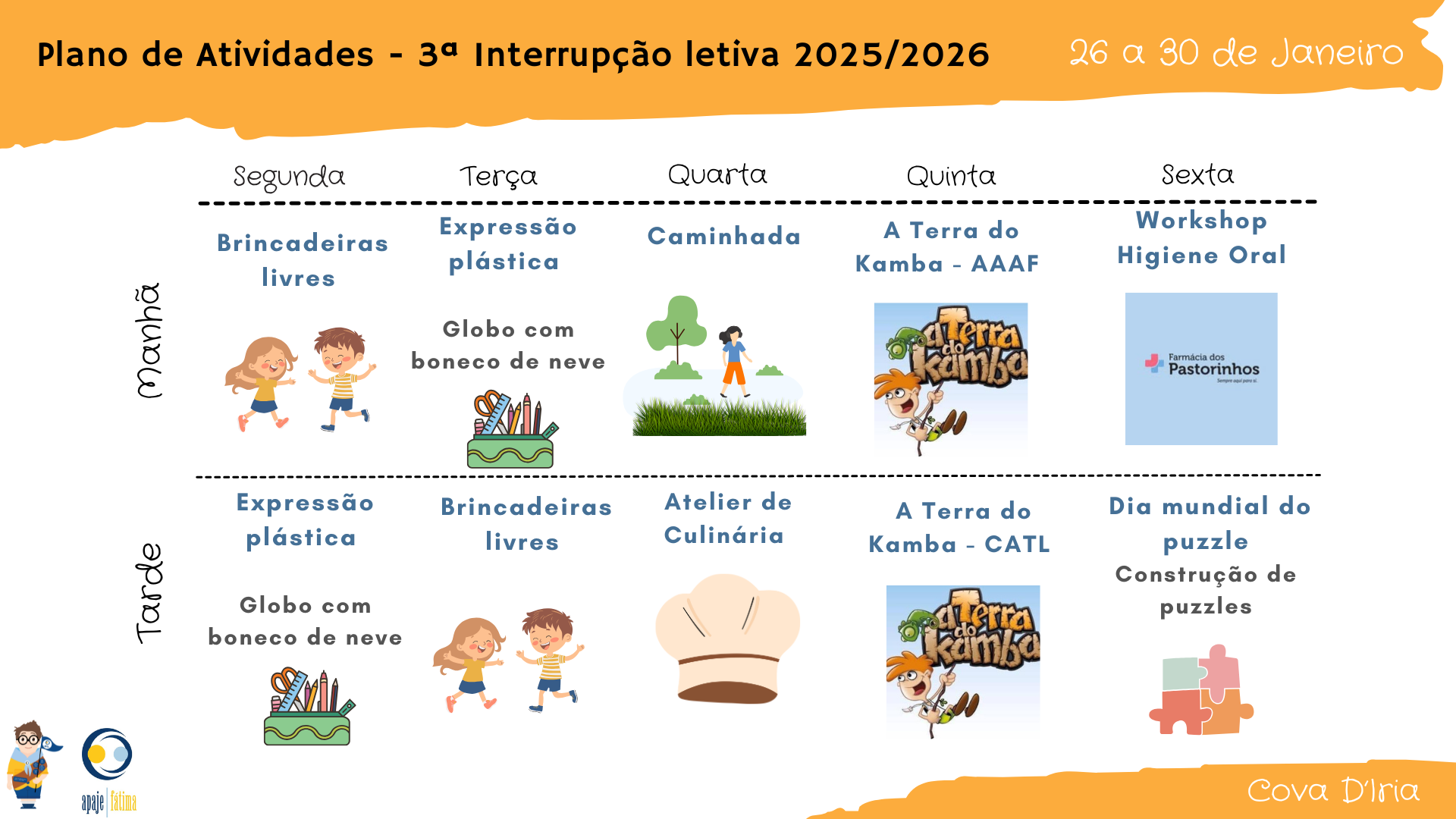 A 3ª Interrupção letiva está a chegar e preparámos muitas atividades divertidas a pensar nos nossos meninos.